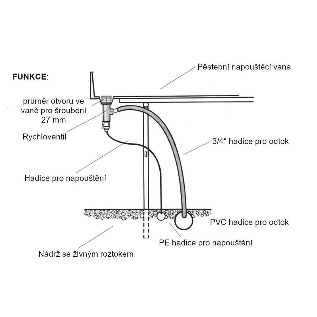Rychloventil pro napouštěcí vany Ebb&Flow, průměr 10x12,5 mm.